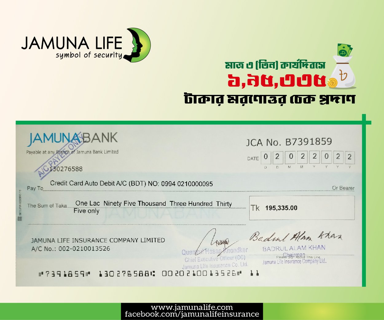 Posthumous Check Payment for Tajul Islam